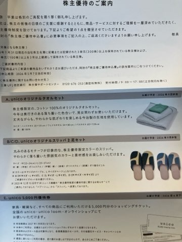 毎年少し迷うのですが、今年もunico優待券を選びました。