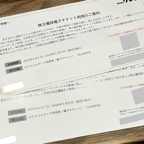 来年は60,000円分の優待をとるか?家族4人で2泊は無理かな〜迷いますね。