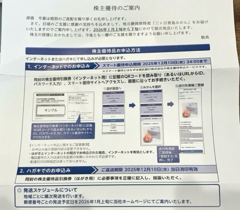 今年はみかんも高騰しているそうです。優待は2,500円相当とありますがもっと高そう。