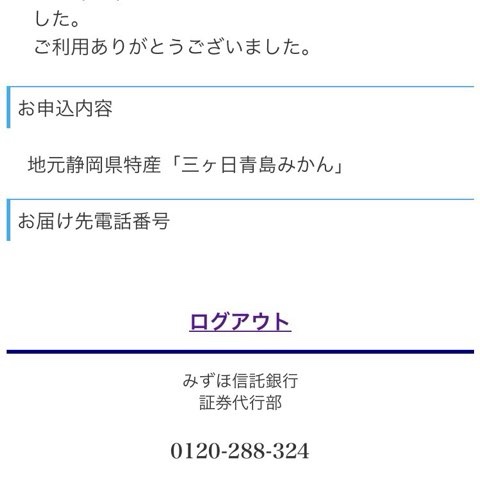 春は新茶、冬はみかんが届きます。継続保有1年以上と条件がありますが、業績も良く配当利回りも良いのでまだまだ保有を続けます。
