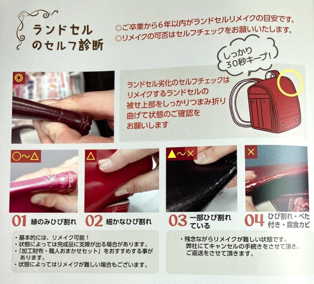娘はとても綺麗にランドセルを使っていたので、大きな傷もなく、卒業後の5月頃に注文したので問題なくリメイクできました。