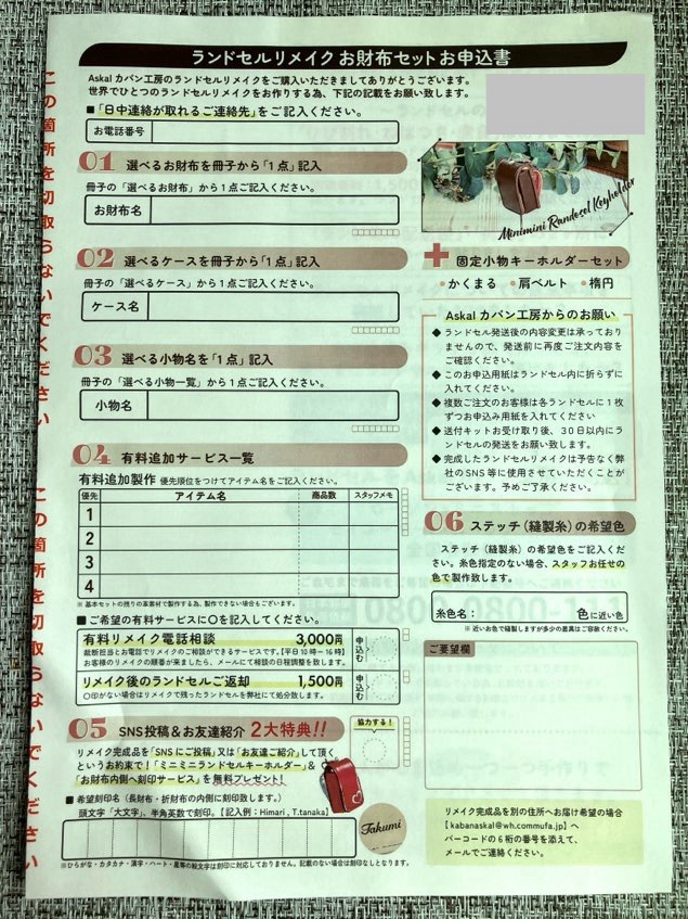 ランドセルリメイクの案内冊子が同封されています。