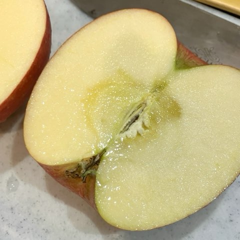 時間がたつと蜜はなくなってしまいますが(りんごに吸収されるのかな?)冷蔵庫にしばらく入れておくほうがジューシーで美味しくなる気がします。梨も梨狩りしてすぐよりも、少し保存してからのほうが美味しくなるかな同じなのかな?