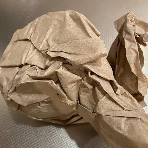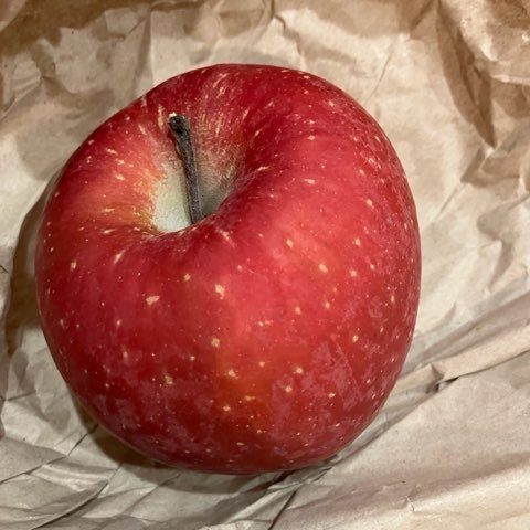 大きいりんご。新聞紙に包んでビニールに入れて冷蔵庫保管しています。