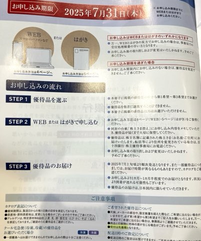 申し込みはWEBまたはハガキから。WEBで申し込み。台紙に記載された優待番号・パスワードを入力。