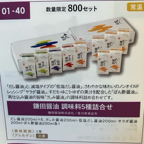 昨年も同じセットにしましたが、ドレッシングやポン酢もとっても美味しかった。今年のはだし醤油が多いですね。