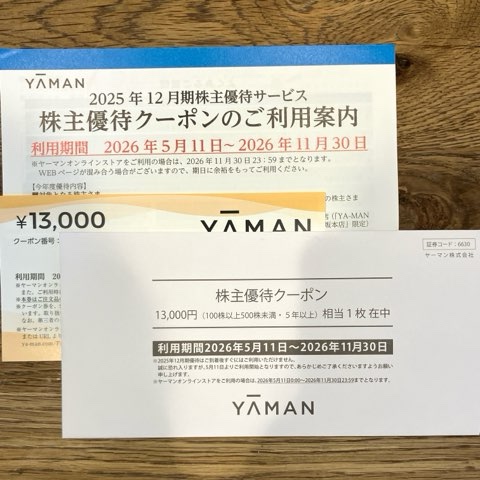美容家電やコスメで人気のヤーマンから株主優待クーポンが届きました
