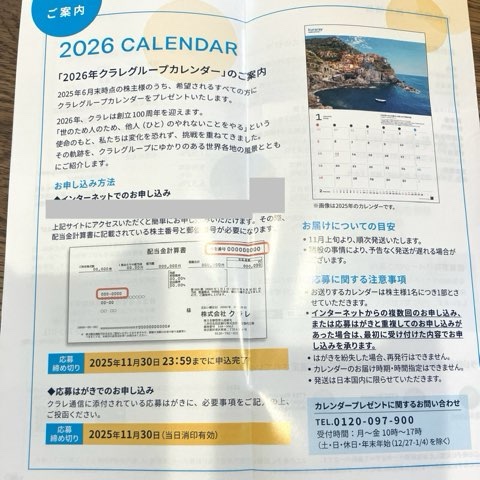 カレンダーは申込みをしないと送られてこないので、案内が届いたら早めに申し込んでおきましょう。