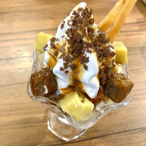 初めて食べたおいもパフェですが、すっごく美味しかった〜。ソフトクリームもめっちゃ美味しい。