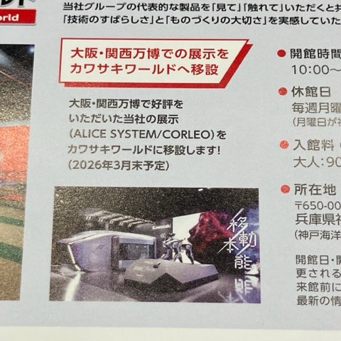 家族でカワサキワールドに行きましたが、すごく楽しかったです。関西万博の展示が移転されたらまた行きたいな〜。