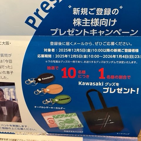 ※3月末・9月末保有でカワサキワールドクーポンが届きました