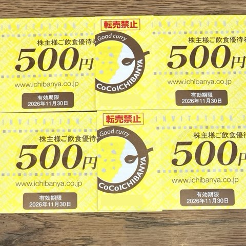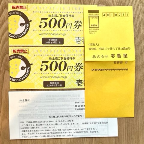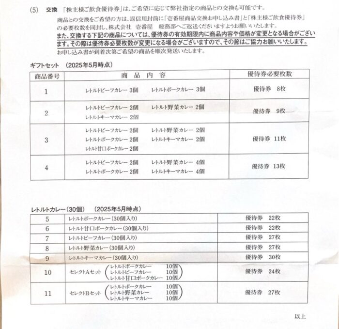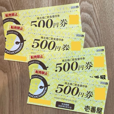 2025年2月末権利の優待も残しているので、同時利用します。100株2名義、2回分の優待券を合わせて4,000円分になるので、家族でカレーを食べることができそうです。