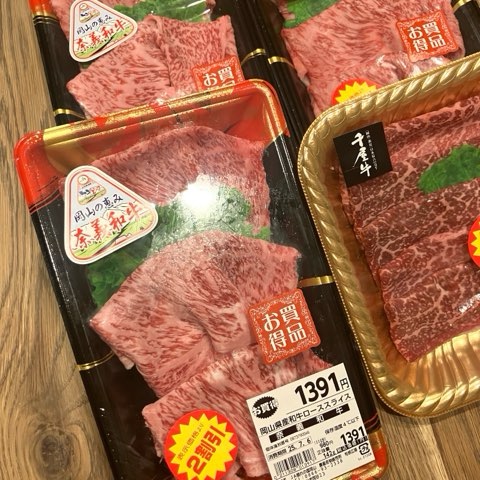 店内には精肉店もあり、岡山和牛を見つけました!最近家族みんなが好きなすき焼き用のお肉を割引価格でゲット。
