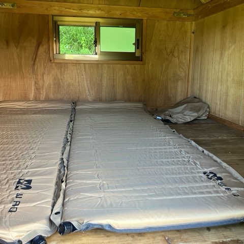 キャンプ用マット2枚が限界なので、大人なら2人までかな。大人2人、幼児1人ならなんとか寝れると思いますが、狭いと思います。
