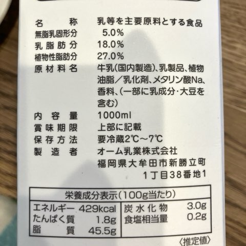 賞味期限4日程度のコンパウンドクリーム(生クリームと同じように使える)が1L300円!!!やっすーーい。生クリーム200ml買うより安い。