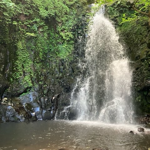 隣奥に天狗の滝があり、夏でも涼しい。天然水もあり、ペットボトルに汲んで帰りました。