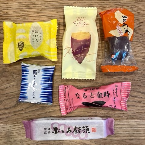 鳴門金時を使った商品もいろいろ。鳴門金時も買って帰ったけど美味しかったよ〜。スイートポテトめっちゃ美味しい。日本三大ういろう(愛知・山口・徳島)ということで、阿波ういろも購入。むっちりしてて甘みが控えめで美味しい。