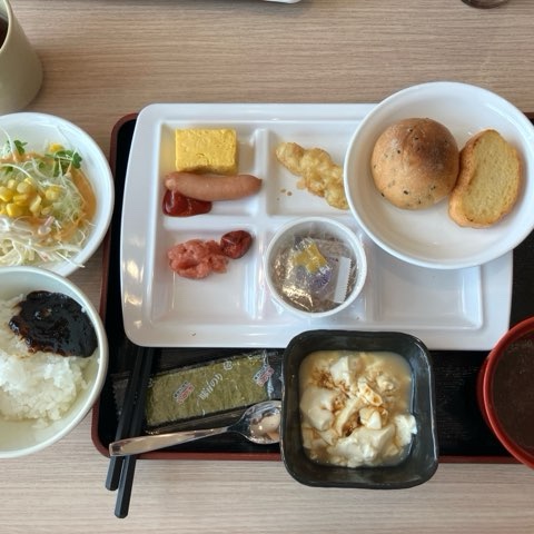 朝食バイキングの内容は店舗によって少しずつ違います。ここはヨーグルトなし。