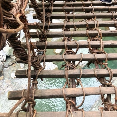 徳島にきたらここは外せない!高速のインターから1時間程度山の中に入ります。かなり怖い橋!幼児と高所恐怖症の方は無理かも。私もかなり怖くて、ゆっくりしか渡れませんでした。今まで行った橋で一番怖い。