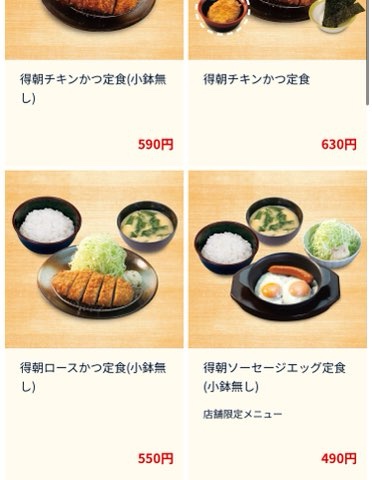 モーニング(午前4時〜午前11時)だとさらにお得!出典:松のや朝メニュー