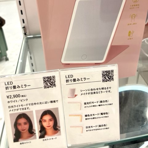 突然コンタクトデビューした娘。ライトがつくミラーが欲しいと言うことで、充電式の折りたたみミラーを購入。