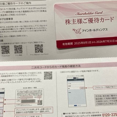 Francfrancの実店舗で使える商品券が貰えます。他にもアインズ&トルペ等の実店舗・Webストア、自社グループ調剤薬局等でも使えます。