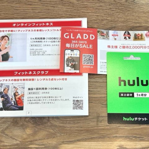 Huluチケット目当てで優待を取りましたが、なんだか他にもいろいろありました。GLADDはたまに洋服を購入していたので、割引券すごく嬉しいです。ビームスが好きなので可愛い服あったら買お