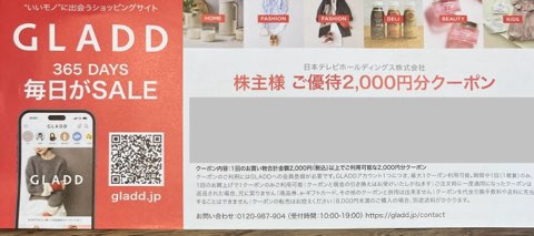 優待にGLADDの割引クーポンが入っていました。
