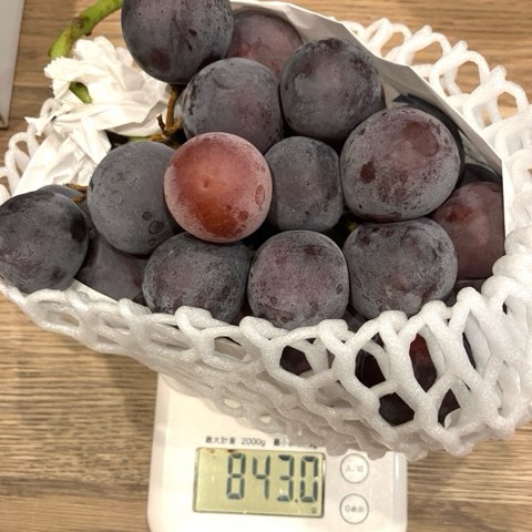 2022年は酷暑等の影響で例年よりもやや赤みが強いものもあるが、糖度も高く立派に育ったそう。脱粒しやすいが品質に影響なし。