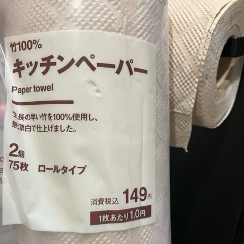 1枚あたりの値段って気にしたことなかったのですが、優待利用7%割引だと1枚あたり0.9円。かなり安いのかも!と思い購入してみました。近所のスーパーにあるコストコペーパータオルは160シート3ロール入り989円、1枚あたり約2円。無印の約2倍の値段ですが、コストコは倍以上の厚みがあるのでどちらが安いのかは??