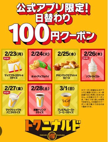 本命はマックナゲット!100円は嬉しい、絶対買う。あとは特に欲しいものはないので行かないかも。