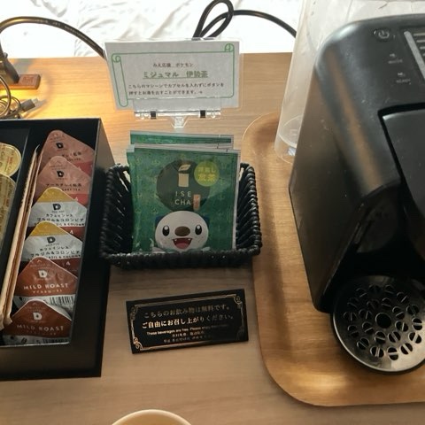 伊勢茶は置いてあるものだけですが、珈琲や紅茶は受付に置いてあるので好きなだけ飲めます!