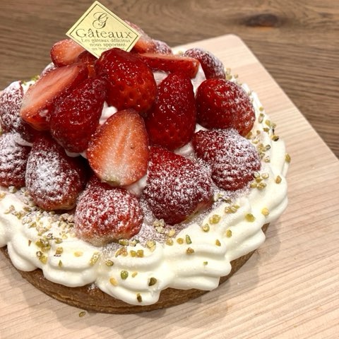 いちごの下はカスタード。タルトはチーズケーキにしました。