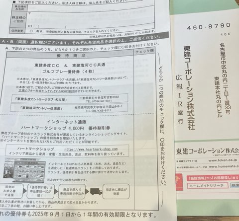 | 1000株以上 | ①平日1年カード または②5000円割引券 |
