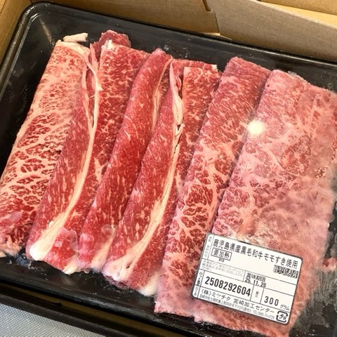 鹿児島県産黒毛和牛すき焼き用(モモ300g)を選択。
