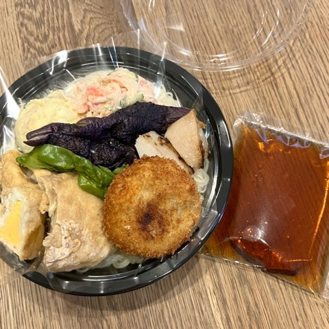 私は冷たいごはんが苦手なので、たま〜に1日働く時は(年3回くらい…)麺弁当にすることが多いです。前日に作って、朝持っていくだけなので楽。麺とおかずの間にOPPシートやラップを挟んでおくと◎