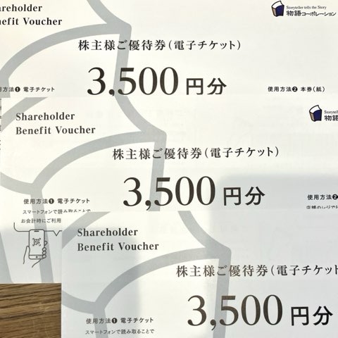 3名義、合計10,500円分の優待カードになります。焼肉きんぐで家族で利用したら足りません。。