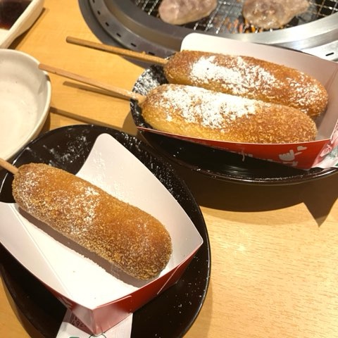外はカリッ、中はとろ〜っと伸びるチーズで、想像以上にちゃんとしたチーズハットグでした。甘じょっぱい衣とチーズのバランスが良くて、焼肉の箸休めというより普通に主役級。