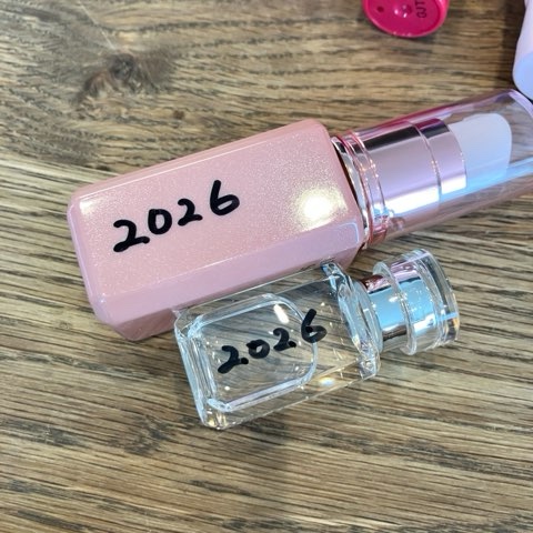 早く使おうと思ってるけどオイルや美容液はどうしても残ってしまうので、購入年を記入して古いものから使うようにしています。美容液も早く使い切れるよう、3プッシュくらい使うようにしたら肌の調子が良くなりました。ケチっちゃダメ。