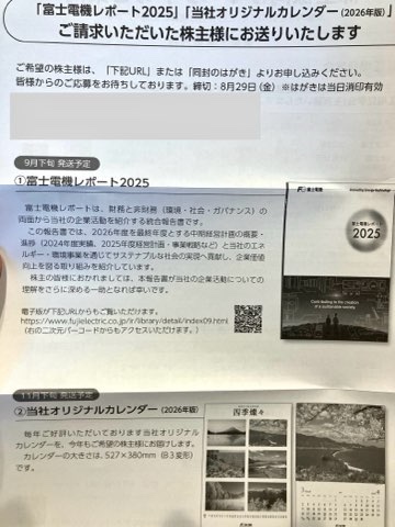 - カレンダー申し込み案内到着日 2025年8月19日