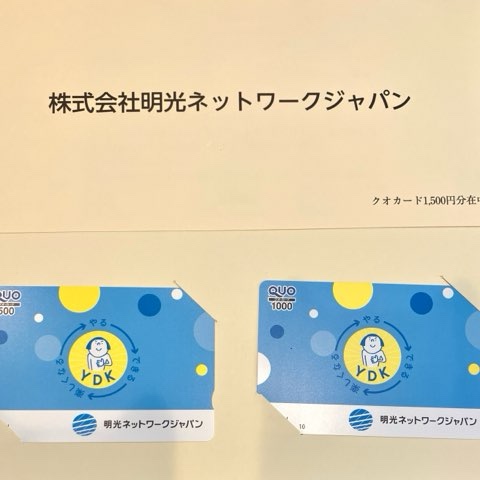 長期保有なので、100株で1,500円分のQUOカードが届きます