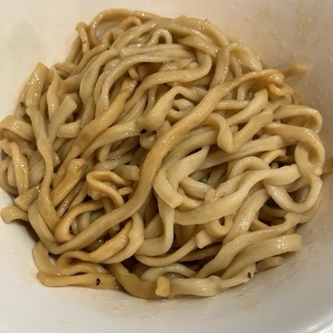 スープはしょっぱいので、茹で野菜を乗せることでちょうど良い味になります。もやし1パック・キャベツ50gは必須。野菜なしにしたら味が濃すぎてたぶん食べ切れない。