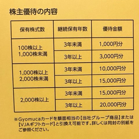 | 100株以上 | 1,000円分 | 3,000円分 |
