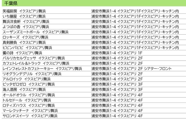 イクスピアリで使える店舗はこちら(2026年3月現在)