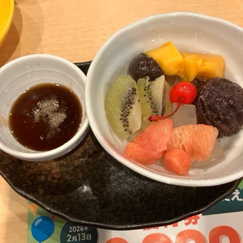 私は何にしようか迷って、さつまいもパフェはもう食べたしな〜ってことであんみつ。あんみつにグレープフルーツが本当に合わなかった。ガストのアサイーにもグレープフルーツ乗ってた気がするけど、合わないと思う。あんみつは美味しかったです。